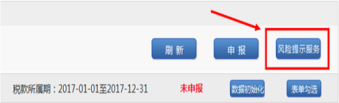 2、完成《中華人民共和國(guó)企業(yè)所得稅年度納稅申報(bào)表》(A類,2017年版)的填寫(xiě)后,您可以點(diǎn)擊“風(fēng)險(xiǎn)提示服務(wù)”按鈕。