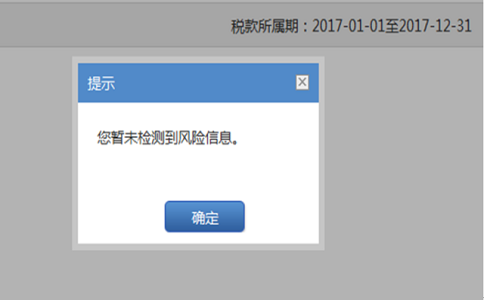 5、 點(diǎn)擊*三步提示框中的“確定”按鈕后如沒(méi)有出現(xiàn)申報(bào)強(qiáng)制校驗(yàn)信息或忽略提示校驗(yàn),系統(tǒng)即刻對(duì)您提交的申報(bào)表數(shù)據(jù)和相關(guān)信息進(jìn)行風(fēng)險(xiǎn)掃描,您在較短的時(shí)間內(nèi)(通常不超過(guò)30秒)即可接收到風(fēng)險(xiǎn)提示信息。