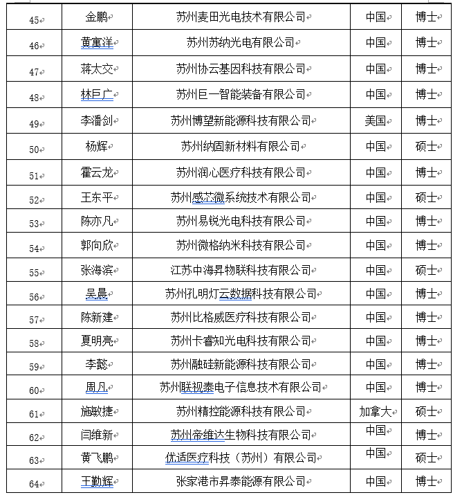 2017年*一批姑蘇創新創業領軍人才計劃創業領軍人才擬立項候選項目
