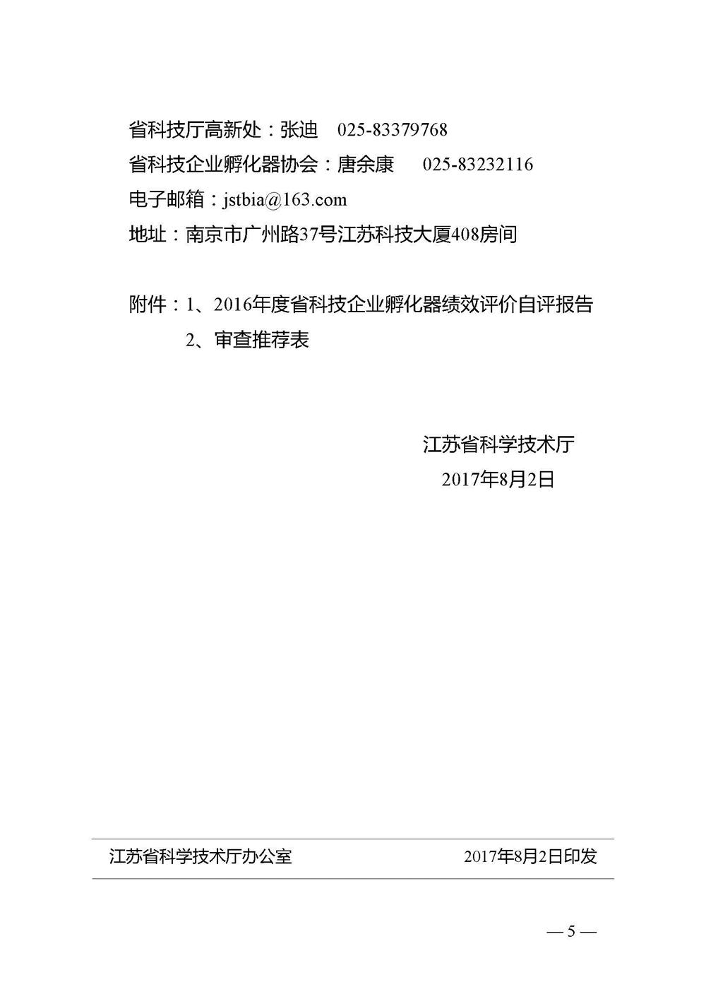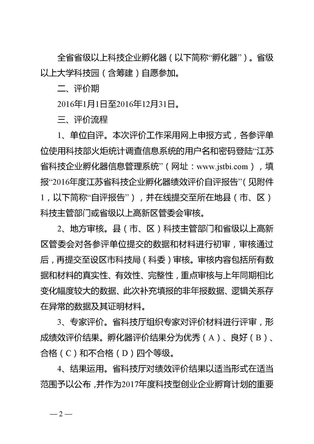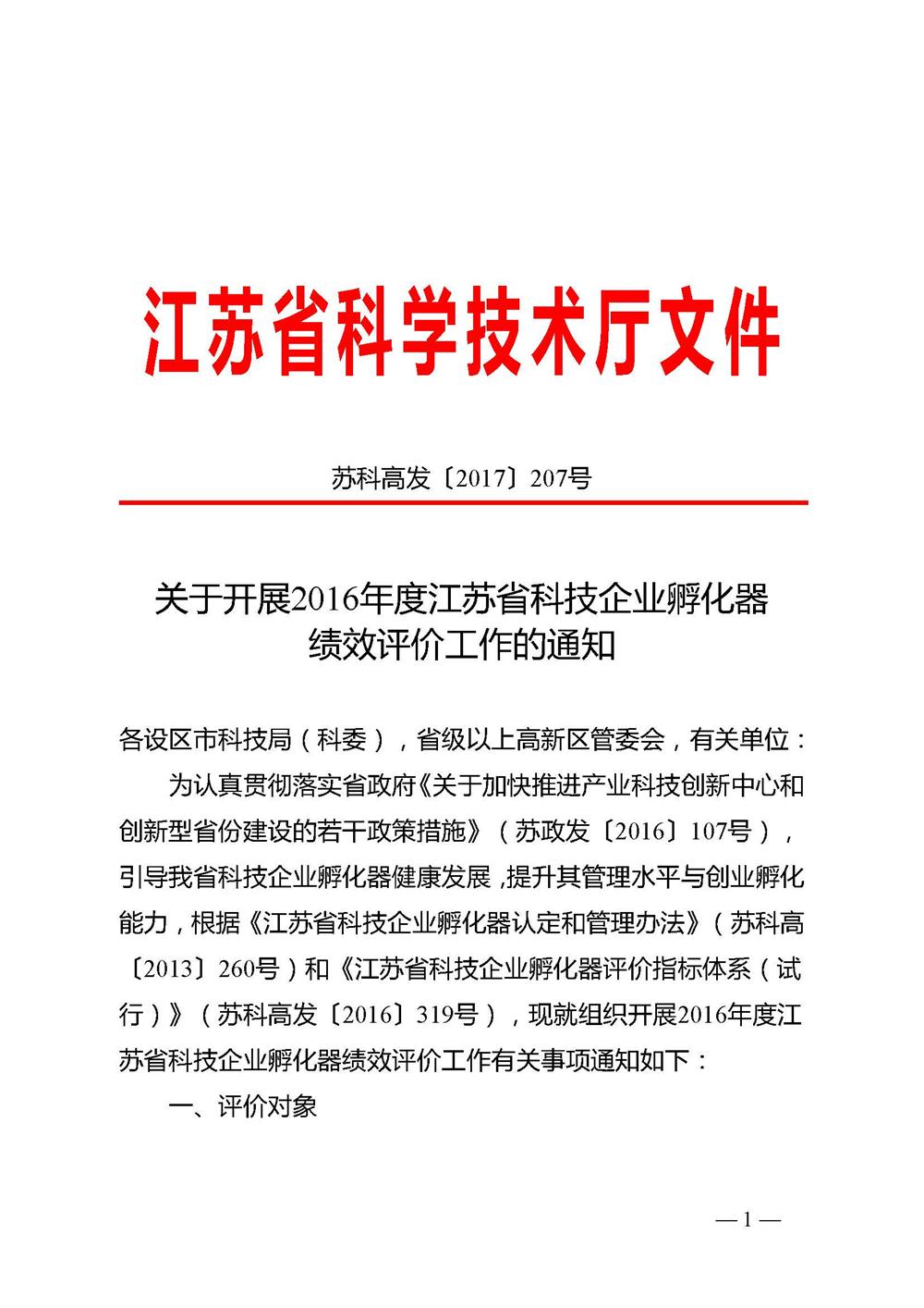 關于開展2016年度江蘇省科技企業孵化器績效評價工作的通知