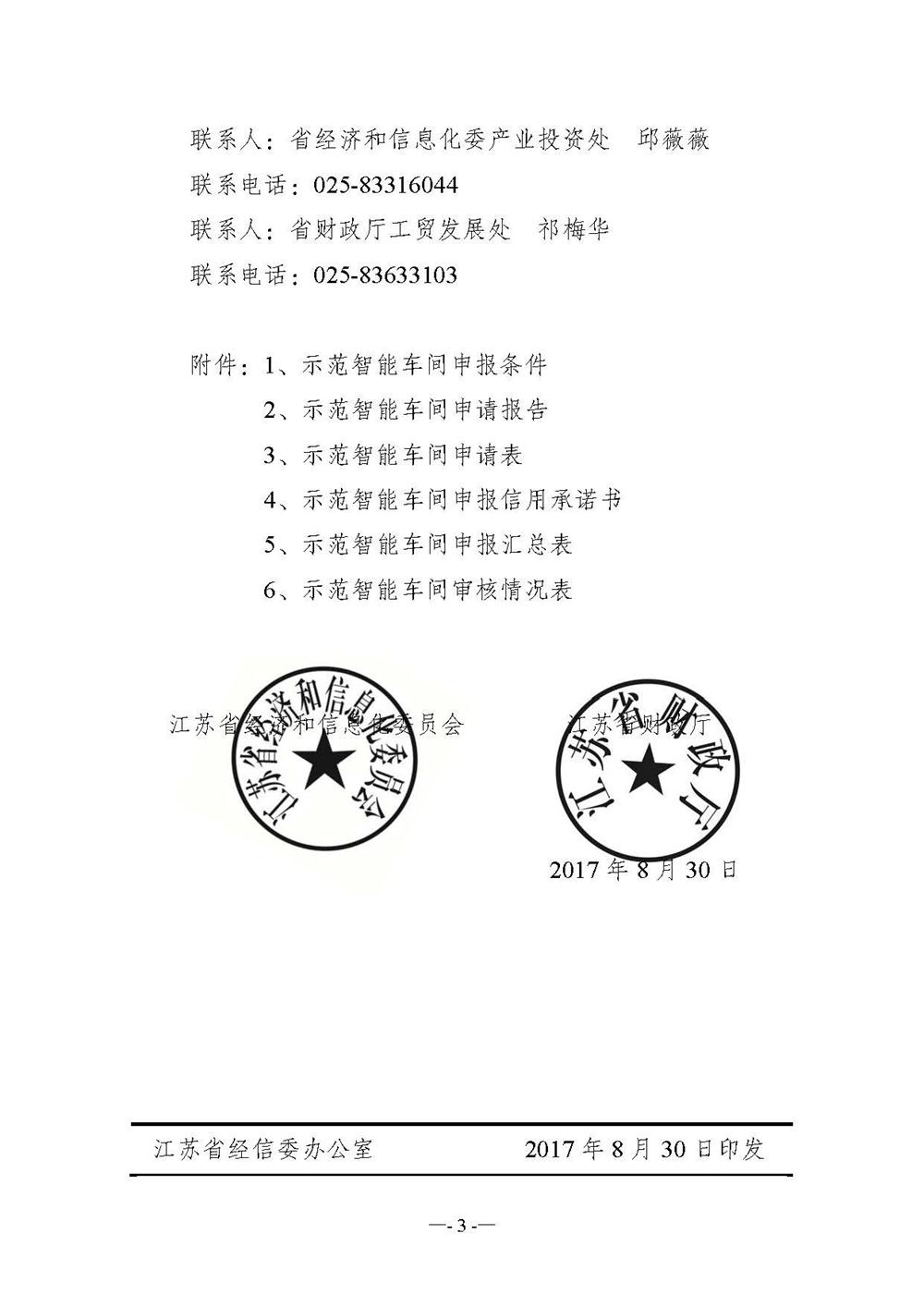 關于做好2017年江蘇省示范智能車間申報工作的通知