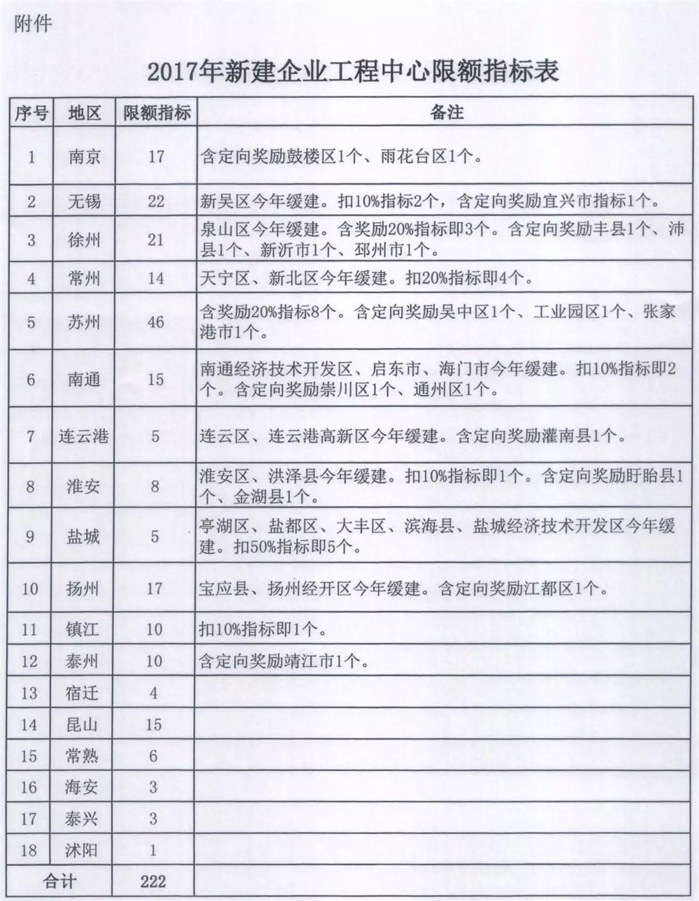 2017年省級企業工程技術研究中心和省級企業人才站點建設工作名額分配表